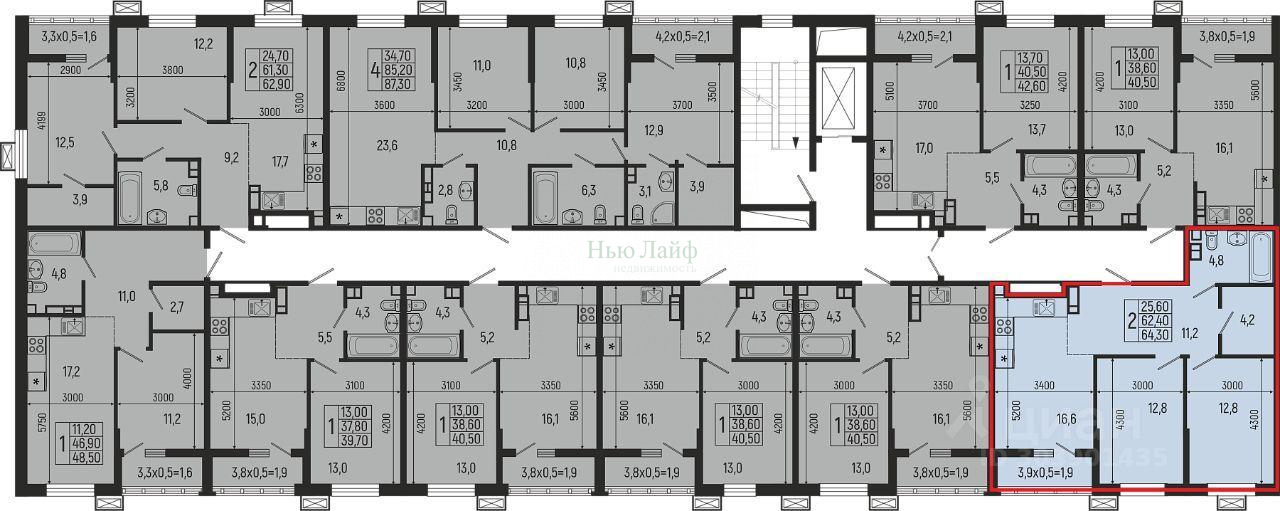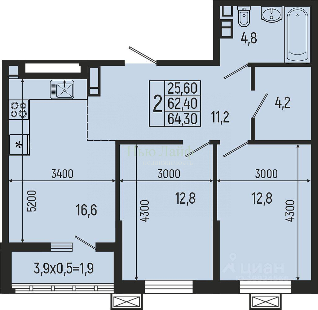 Продается 2-х комн. новостройка, 64 кв.м., 3/16