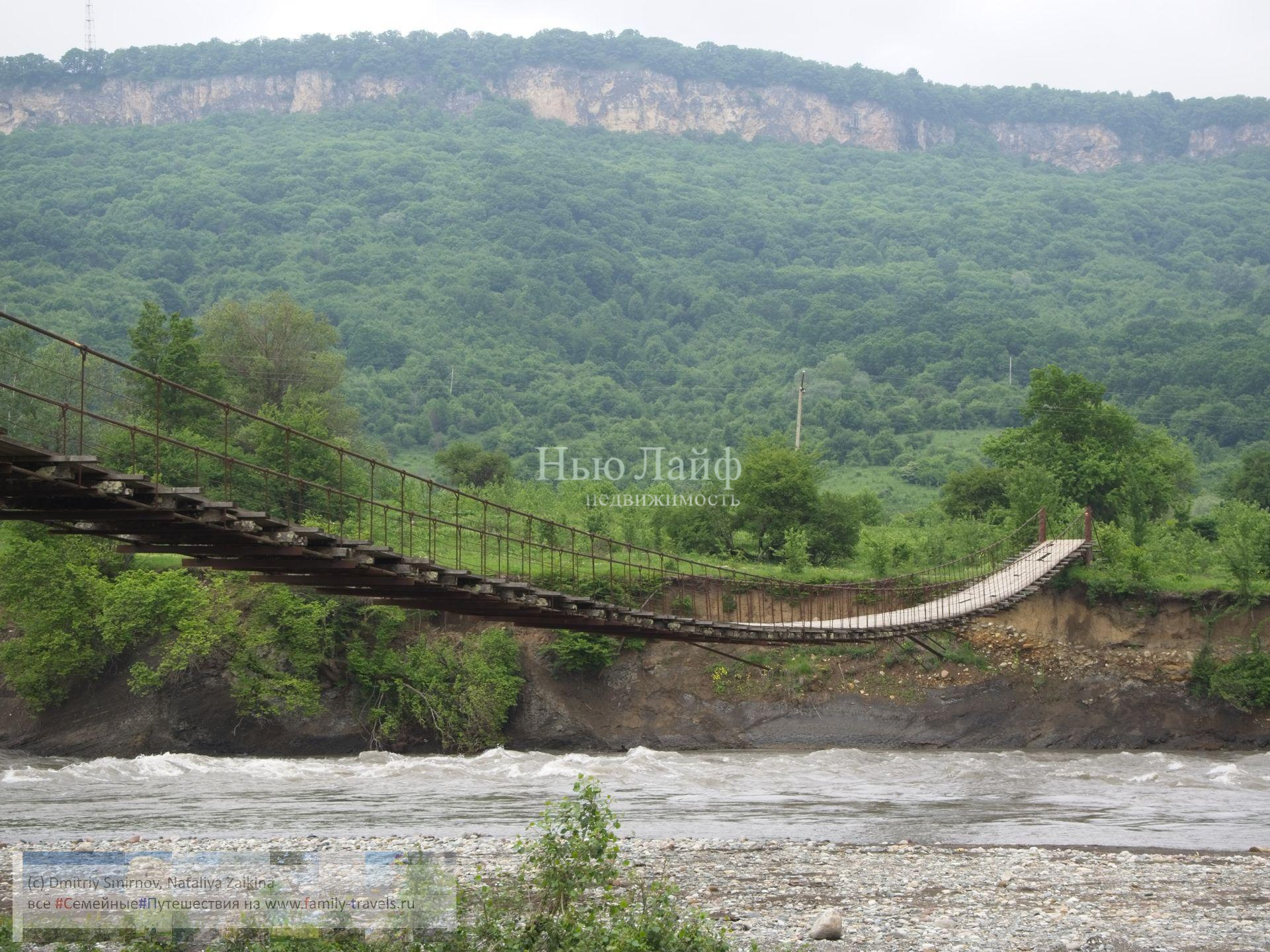 Живописный вид с участка на горы. Недалеко лес и река Белая и висячий мост на Дегуакскую поляну