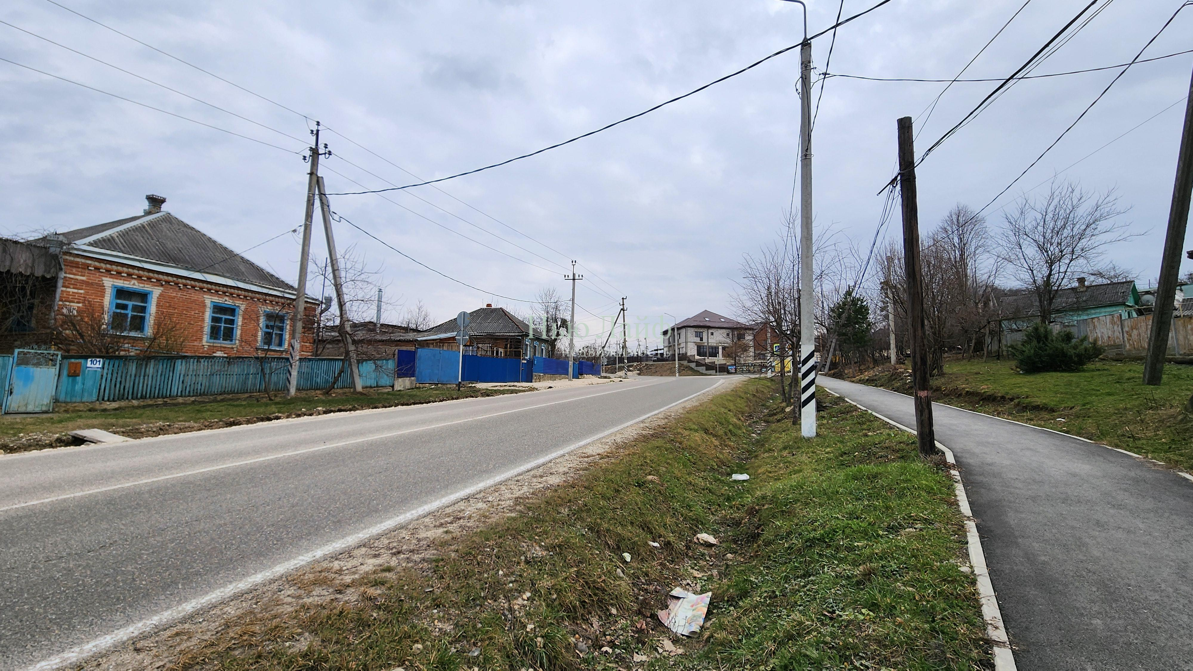 Земельный участок 10 соток в п. Каменномостский, фасад 15 м по центральной дороге на Монастырь. Расстояние до монастыря — 10 км, до трассы на Лаго-Наки — 1.6 км.